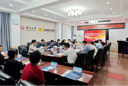 2025年3月31日下午,全国大学生智能建造竞赛广西分区赛组委会秘书处成立大会暨高校建筑类相关专业发展研讨会在广西大学土木建筑工程学院三楼会议室成功举办。会议由广西大学土木建筑工程学院副院长杨海峰主持,广西14所本科及高职院校建筑类相关专业负责人、骨干教师齐聚一堂,共商竞赛筹备与建筑类专业高质量发展大计。