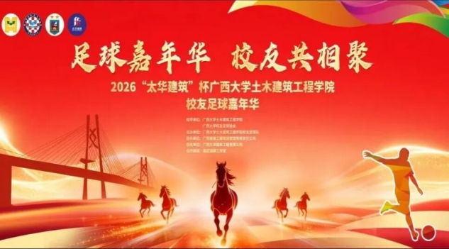 为凝聚校友力量、增进校友情谊、丰富校园体育文化生活,3月14日,我院2026年“太华建筑”杯校友足球嘉年华在东校园足球场隆重举行。体育学院党委副书记、院长蔡艺,土木建筑工程学院党委副书记、纪委书记银宁,学校校友足球协会副会长邓明建、雷军,钦州防城港分会会长吴泰君等嘉宾出席开幕式。开幕式由土木建筑工程学院教师、土木工程95级校友、校友足协副会长韦良主持。